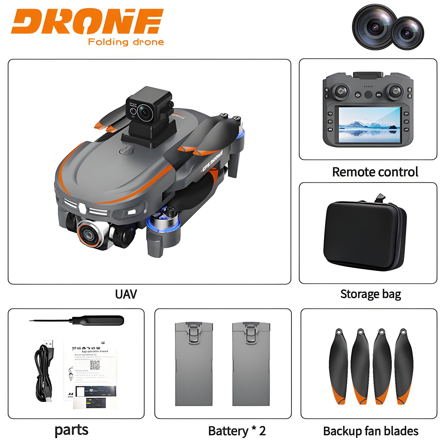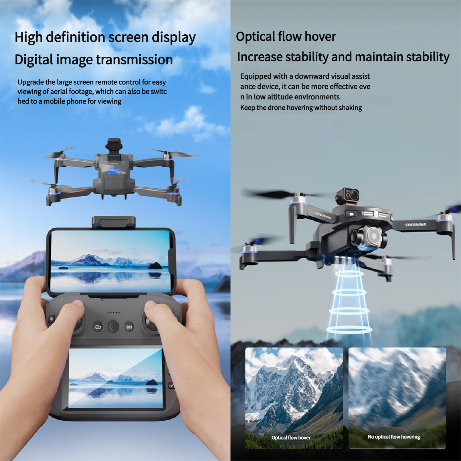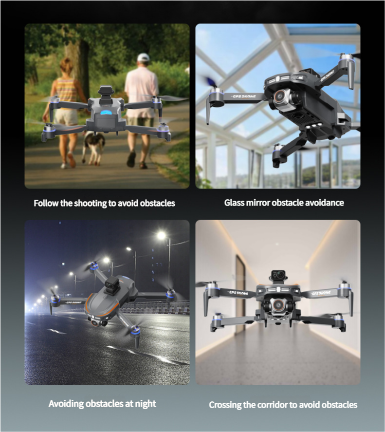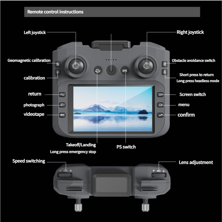 Features: intelligent obstacle avoidance, body folding, ESC lens, dual-camera switching, brushless motor, one-key takeoff, one-key landing, fixed-height hovering, optical flow fixed-height, WiFi connectivity, APP control, gesture photo, gesture video, GPS one-key return, GPS follow, trajectory flight, fixed-point surround, speed adjustment, MV picture and video sharing