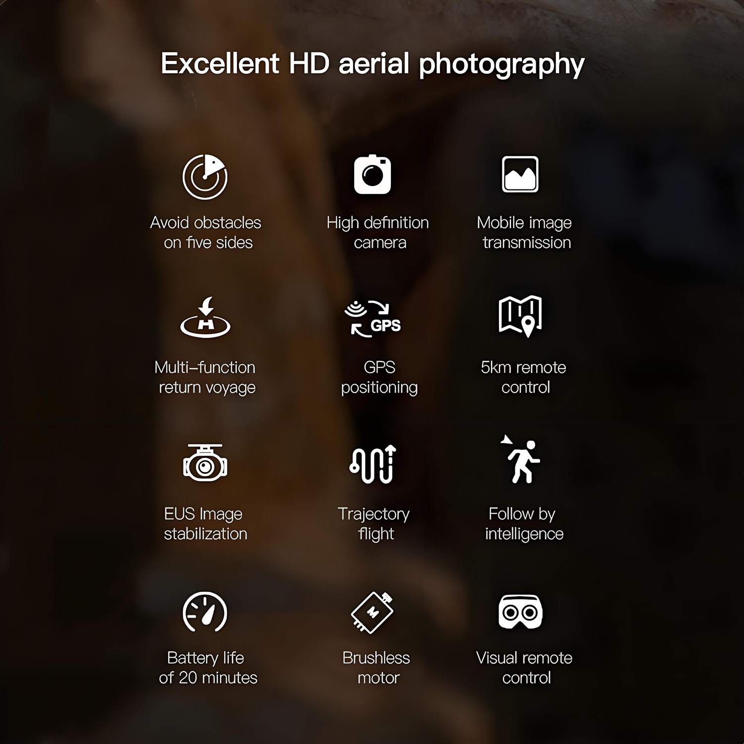 Features: 540°all-around intelligent obstacle avoidance, GPS positioning + optical flow positioning dual mode, dual-camera switching, brushless motor, 8K pixels, equipped with electrically adjustable continuously adjustable 90-degree camera, 7-level wind resistance, uncontrolled return, LCD remote control, low battery return, one-key return, ultra-distance return, 20 minutes or so of battery life, 5g HD mapping, intelligent following, gesture photography, video recording, screen 50x zoom, point of interest surround.