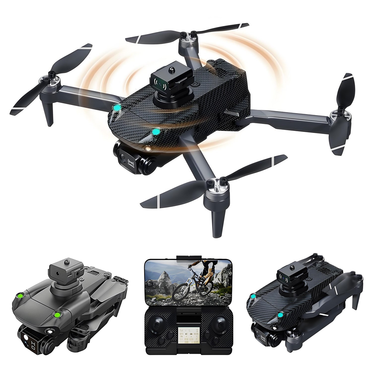 Features: Brushless motor, optical flow positioning, intelligent obstacle avoidance, ESC camera, dual-lens switching, high-capacity battery, MV production/sharing, HD image transfer, foldable body, 360° roll, low battery warning, GPS return, one-key backward, 50x zoom, trajectory flight, headless mode